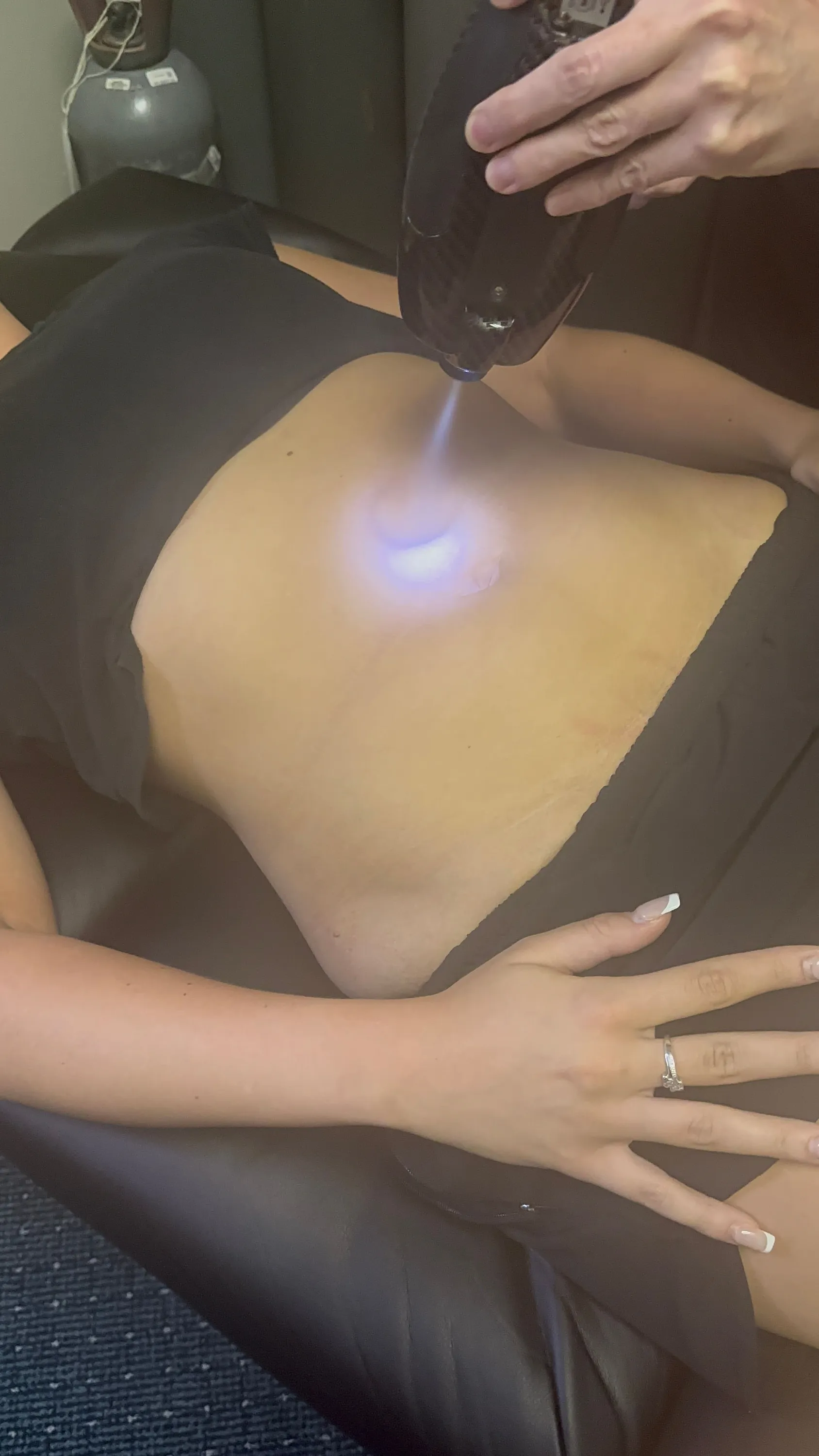 Revolutionize your treatment with true cryostimulation. Our Woodstock chiropractor utilizes the world's best localized cryostimulation. It is unique in its ability to rapidly deliver localized ice and compression. Utilizing carbon dioxide at -78 degrees and 50 bar pressure. The tissue is cooled to 4 degrees Celsius in under 30 seconds causing thermal shock. The construction of vessels and muscles slow the blood flow and forces the immune and hormonal systems to respond Immediately, the blood vessels dilate to around four times their usual size. This floods the area with blood, which is rich in oxygen, hormones, nutrients, and activated enzymes.